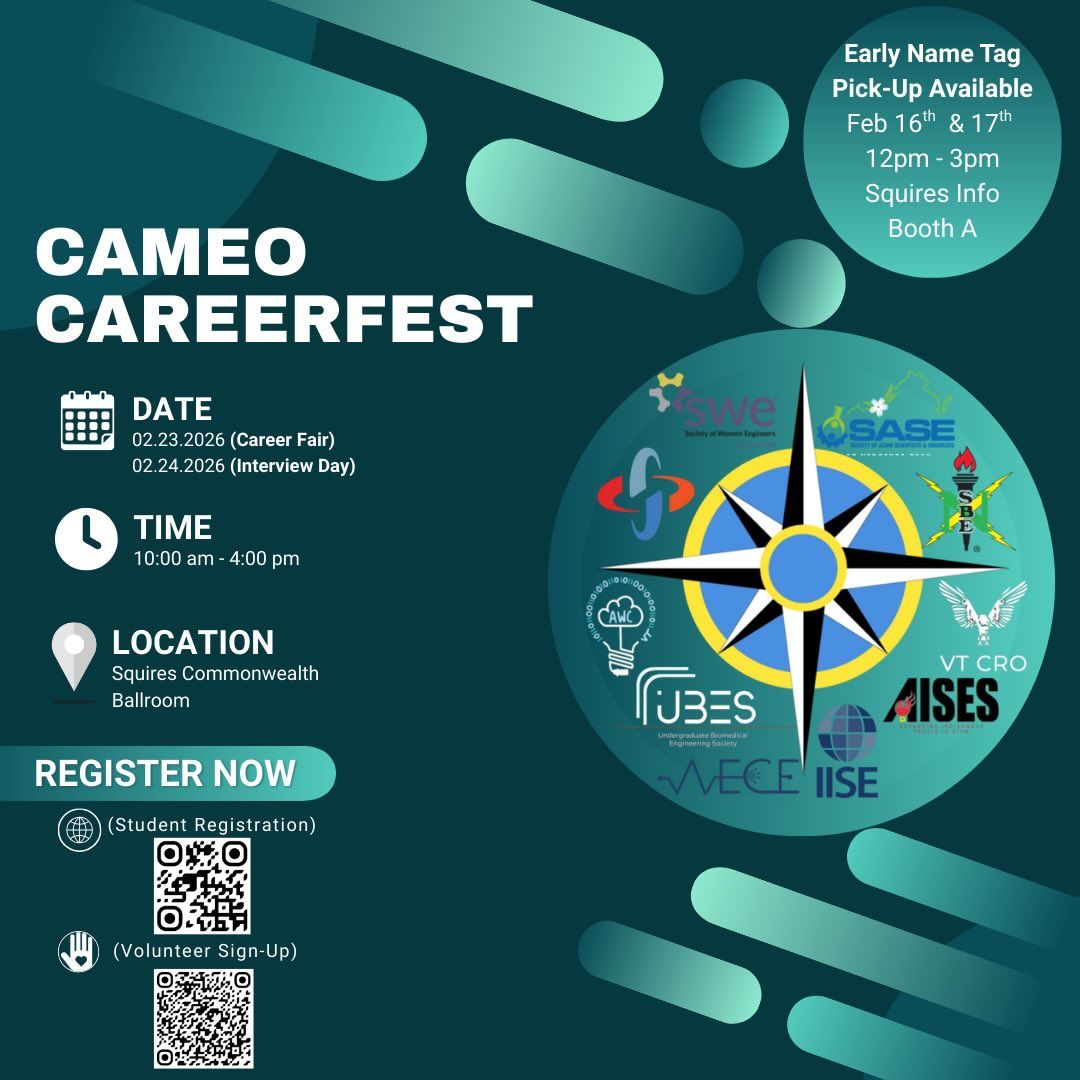 Come out for CAMEO’s career fair next week! This is your chance to connect with recruiters & explore internships/full-time roles!